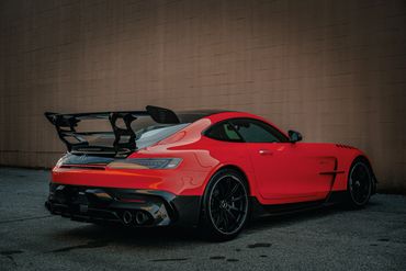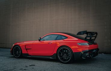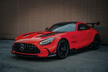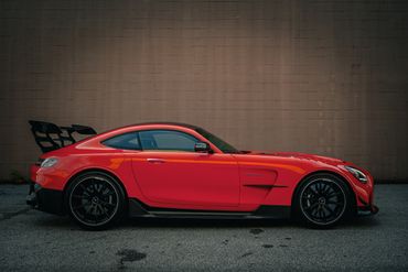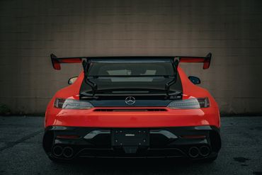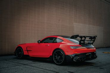 This 2021 Mercedes-AMG GT Black Series was delivered new to Mercedes-Benz of Vancouver. Finished in Magma Beam Orange over black leather and Dinamica upholstery, the car is powered by a twin-turbocharged 4.0-liter V8 mated to a seven-speed dual-clutch transaxle and a limited-slip differential. Black Series examples of the AMG GT utilize carbon-fiber components to reduce weight and feature widened aerodynamic bodywork and upgraded internal engine components. Additional equipment includes staggered-diameter forged wheels, carbon-ceramic brakes, an adaptive sport suspension, and an adjustable carbon-fiber double rear wing as well as front and rear cameras, heated AMG performance seats, Keyless Go, The Lane Tracking Package, and a Burmester surround-sound system. This AMG GT Black Series has 800 km and is offered with an accident-free Carfax report.